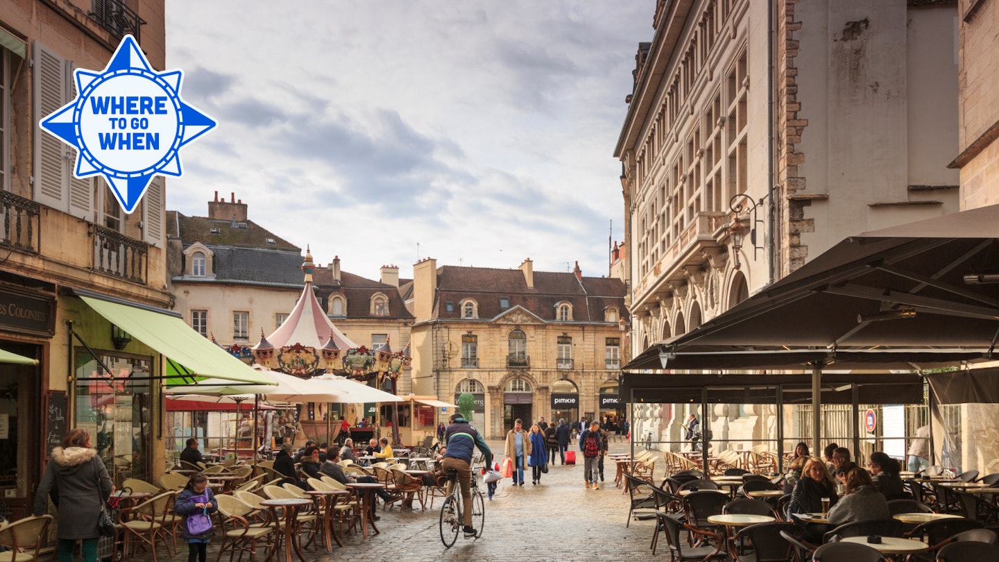 Tiny Domaine de la Romanée-Conti, from where the world’s most expensive reds hail, is here. In September, you might catch the harvest in progress. And, with average highs of 20°C (68°F), it will be warm enough to use the hiking and biking trails that weave between wineries or to happily sit outside a pavement cafe sipping a Côte de Nuits pinot noir or buttery chardonnay. Consider basing yourself in beautiful Beaune, home to the spectacular Hôtel-Dieu (venue of the annual, all-important Burgundy wine auction), numerous wine merchants’ houses and cellar doors, and many Michelin-starred restaurants.
